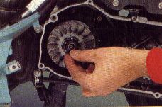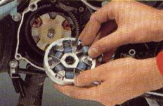 Con la correa fuera, ya sólo os queda extraer el cuerpo circular del variador con los rodillos dentro. Lo habitual es que se os caigan y acaben rodando por el suelo. |