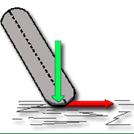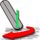 Figura4.8:El neumático recibe la carga de la frenada de forma asimétrica (flecha verde), aumentando su carga lateral (flecha roja). En tumbada la superficie de contacto de la rueda con el asfalto es muy pequeña y existe la posibilidad de que, el margen de adherencia que le queda, no aguante esta carga adicional que recibe.