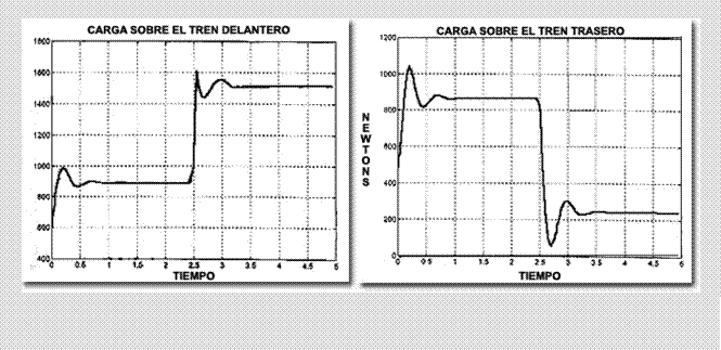 sucederá siempre que la rueda deje de girar, antes de parar Por otro lado, cuando los amortiguadores están comprimidos al máximo, cualquier irregularidad del terreno hará que la rueda rebote y se separe del asfalto. Figura4.2:Estegráficomuestrala magnitud de la variación de la carga sobre los amortiguadores, al accionar el freno delantero. Nótese la gran carga
