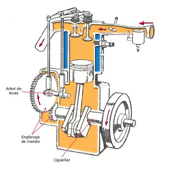 que por cada dos vueltas del cigüeñal, sólo