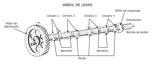 El arbol de levas es un eje que gira solidario al cigüeñal